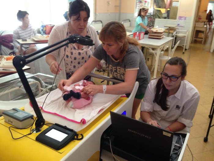El sistema funciona así: personal del Registro Civil especialmente capacitado para tratar con recién nacidos, visita a cada mamá en su habitación. Con ellos llevan una oficina móvil que tiene la tecnología necesaria para tramitar la partida de nacimiento y el documento. Con una especie de escáner le toman las huellas de los deditos de las manos a los bebés. Además, les sacan una fotografía.