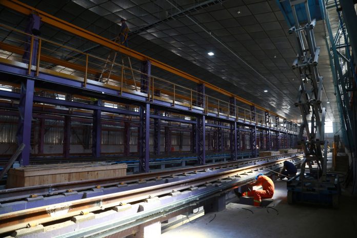 Actualmente se encuentra en ejecución el montaje de catenaria, el sistema de ventilación y la aislación térmica, además del sistema contra incendio y las instalaciones eléctricas de media y baja tensión.