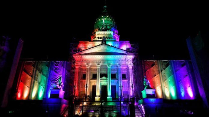 La Ciudad de Buenos Aires ilumina este miércoles los monumentos porteños con los colores de la bandera LGBT+ para celebrar los 10 años de la aprobación. Mirá cómo lucieron desde las 00.